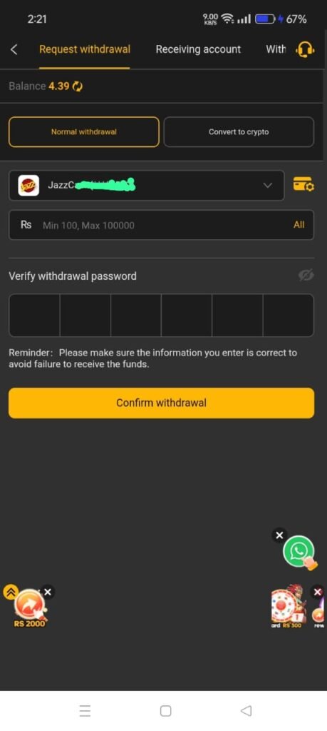 Complete the game rounds by following the rules. Winning gives you instant PKR rewards, which are credited to your X666 account. - Withdraw Your Earnings